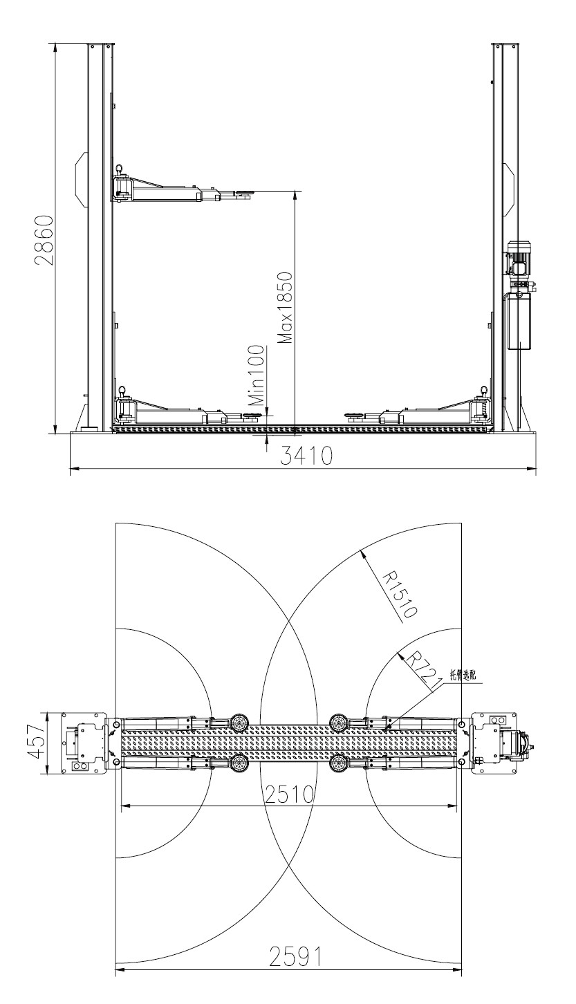 6) حداقل ارتفاع بالابر 110 میلی متر است و برای تعمیر و نگهداری خودروهای درجه بالا کاربرد دارد.