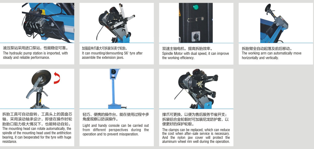 4) مجهز به واگن هیدرولیک است که باعث می شود تایر بدون تعویض نیروی انسانی بر روی تعویض لاستیک حرکت کند.